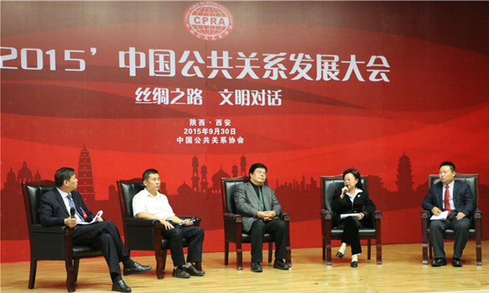 圆桌对话:中国文化传播与品牌形象建设(从左至右分别为:余明阳、郭万超、杜耀峰、吴浣苓、郭晓科)