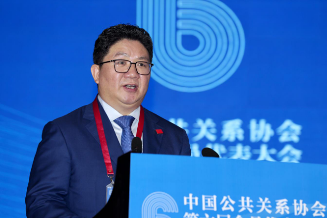 中国公共关系协会第六届理事会会长郭卫民向与会代表介绍新一届理事会人员构成、未来使命等内容。