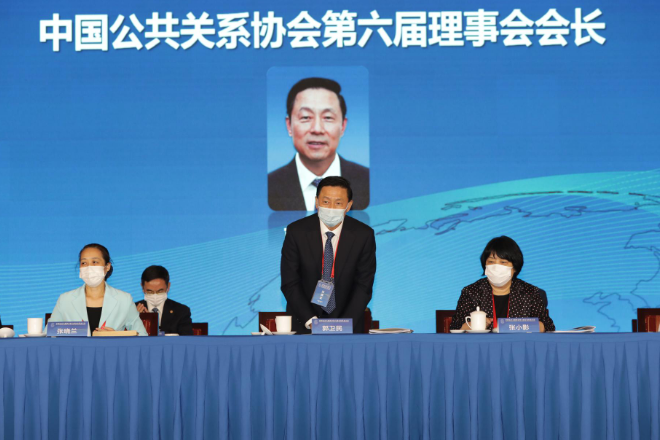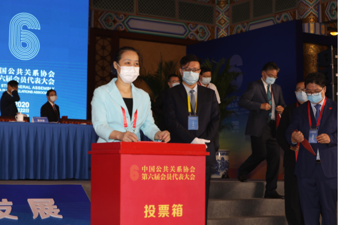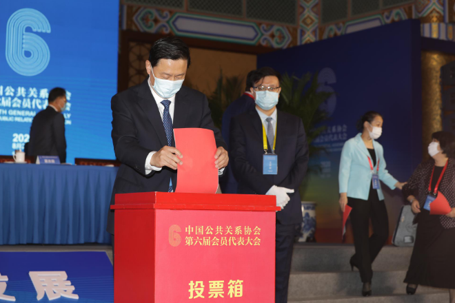 中国公共关系协会第六届会员代表大会选举现场,郭卫民当选新一届理事会会长