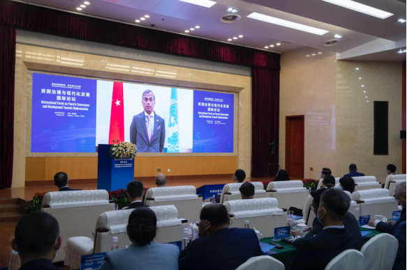 联合国驻华协调员常启德通过视频发言指出,贫困现象是动态的、多层面的。为了全面实现可持续发展目标中的第一项“无贫困”,我们必须消除世界各地一切形式的贫困。现在距离实现可持续发展目标只剩下不到十年的时间,要完成“行动十年”计划,我们必须把注意力转向与世界分享中国的发展奇迹,特别是与非洲大陆的国家分享。无论是在制造业、基础设施、开放市场、还是农业部门准入方面,中国的减贫经验都值得学习。在对“南南合作”以及绿色、可持续的“一带一路”倡议的持续投资中,我们看到中国正在打造一个生态系统,为全球范围内的繁荣、福祉、教育提供一个合作网络。如果这些努力能够全面实现,中国将帮助更多国家的人民摆脱贫困,扭转整个世界的贫困局面。