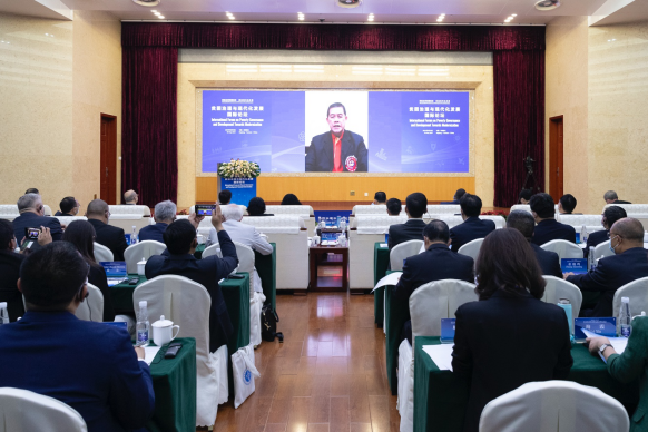 泰国前副总理、泰中友好协会会长功·塔帕朗西作大会视频发言。