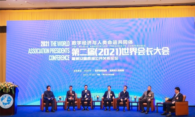 10月23日,由杭州市人民政府与世界休闲组织主办,中国公共关系协会等单位支持的“第二届(2021)世界会长大会暨第12届西湖公共关系论坛”在杭州召开。大会以“数字经济与人类命运共同体”为主题,开通视频会议直播平台,采用“线上+线下”相结合的方式召开。300余位来自政府、海内外商协会会长、行业机构、高校智库、科研机构的代表,立足全球视野,共商数字赋能的城市治理和数字产业化,共谋人类命运共同体建设。