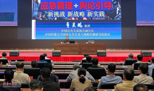 近日,中国公共关系协会副会长、中国传媒大学国家公共关系与战略传播研究院院长董关鹏应邀赴海南省海口市出席2023年第1期海南自贸港大讲堂,围绕“应急管理和舆论引导的新挑战新战略新实践”主题作专题讲座。海南省委书记冯飞、代省长刘小明、省政协主席李荣灿等参加讲座。