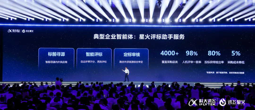 其中,星火商机助手可以实现商机线索应知尽知、客户拜访提质增效、销售管理智能研判,助力一线销售和商机管理效能提升。星火评标助手通过标前寻源、智能评标、定标审核等功能,智能评标结果人机一致率达98%,投标异常检出率超过80%,在大幅提升企业评标效率同时降低采购成本。